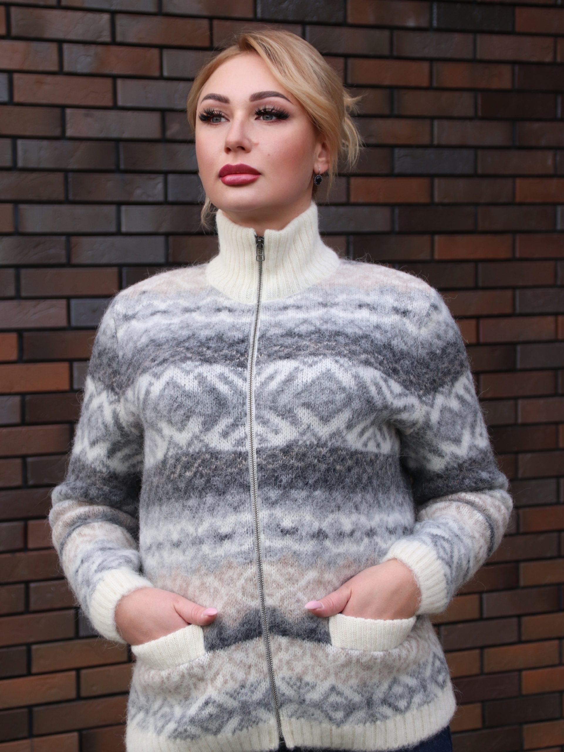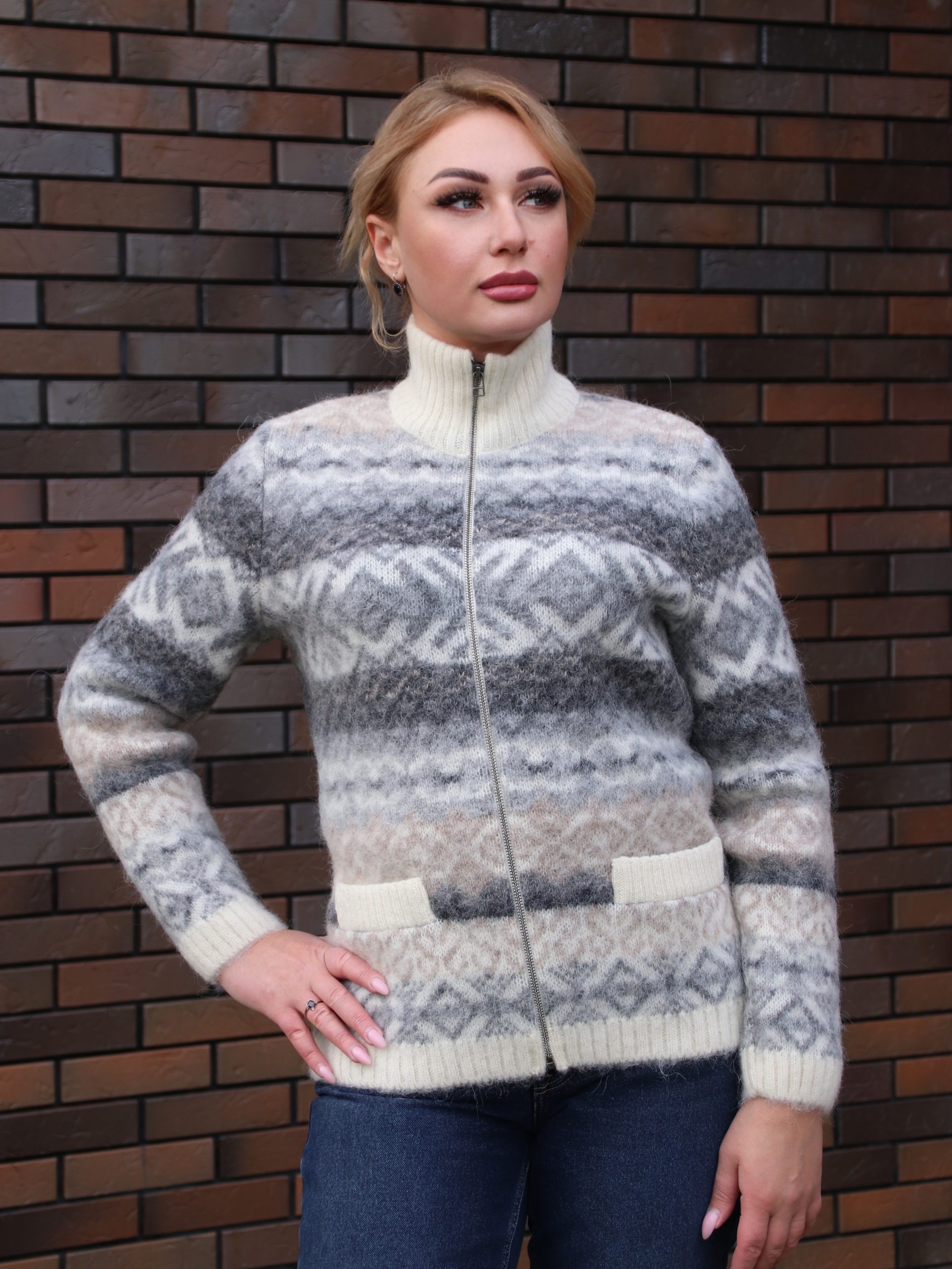 Кардиган вязаный женский на молнии с узором