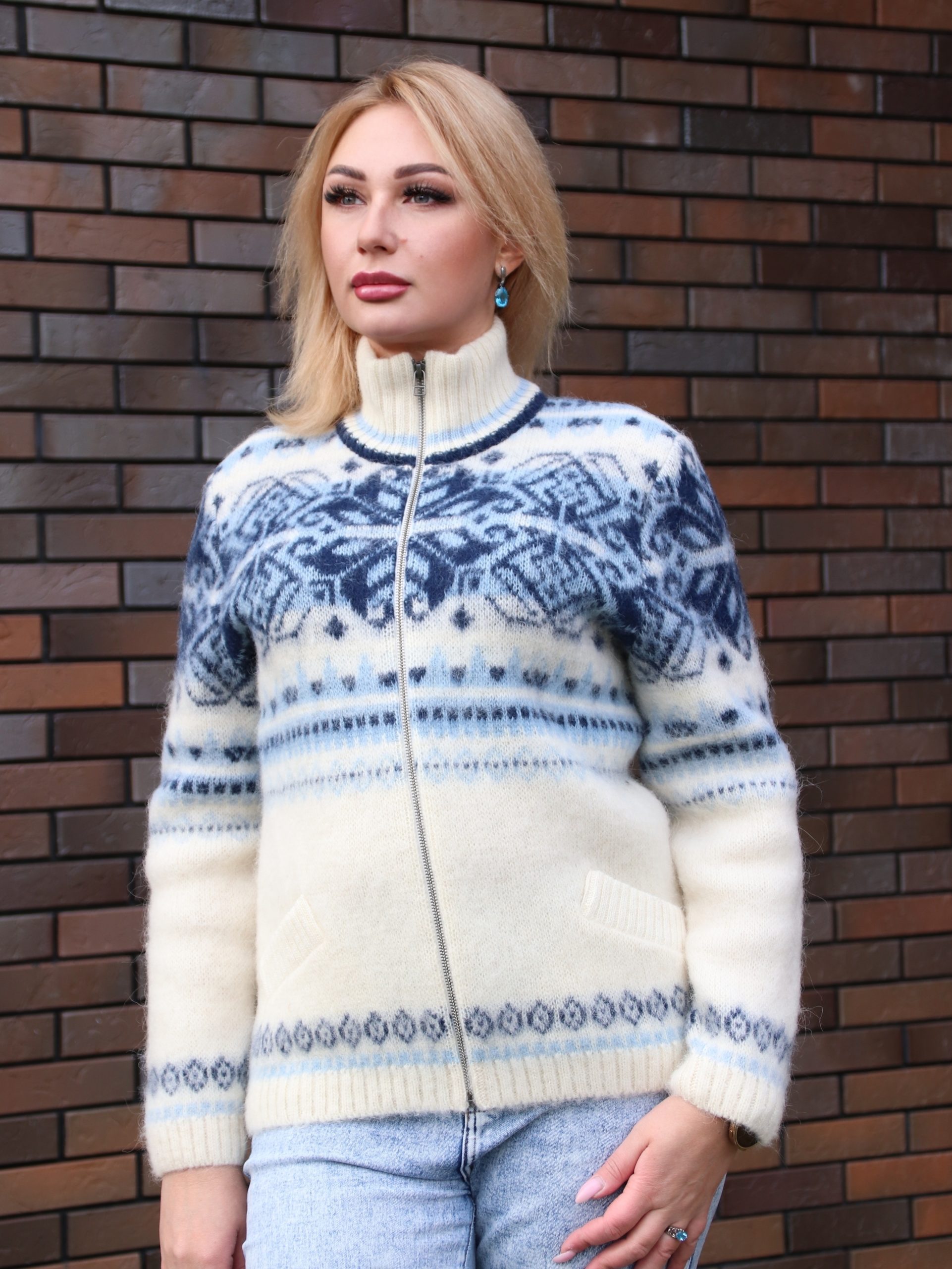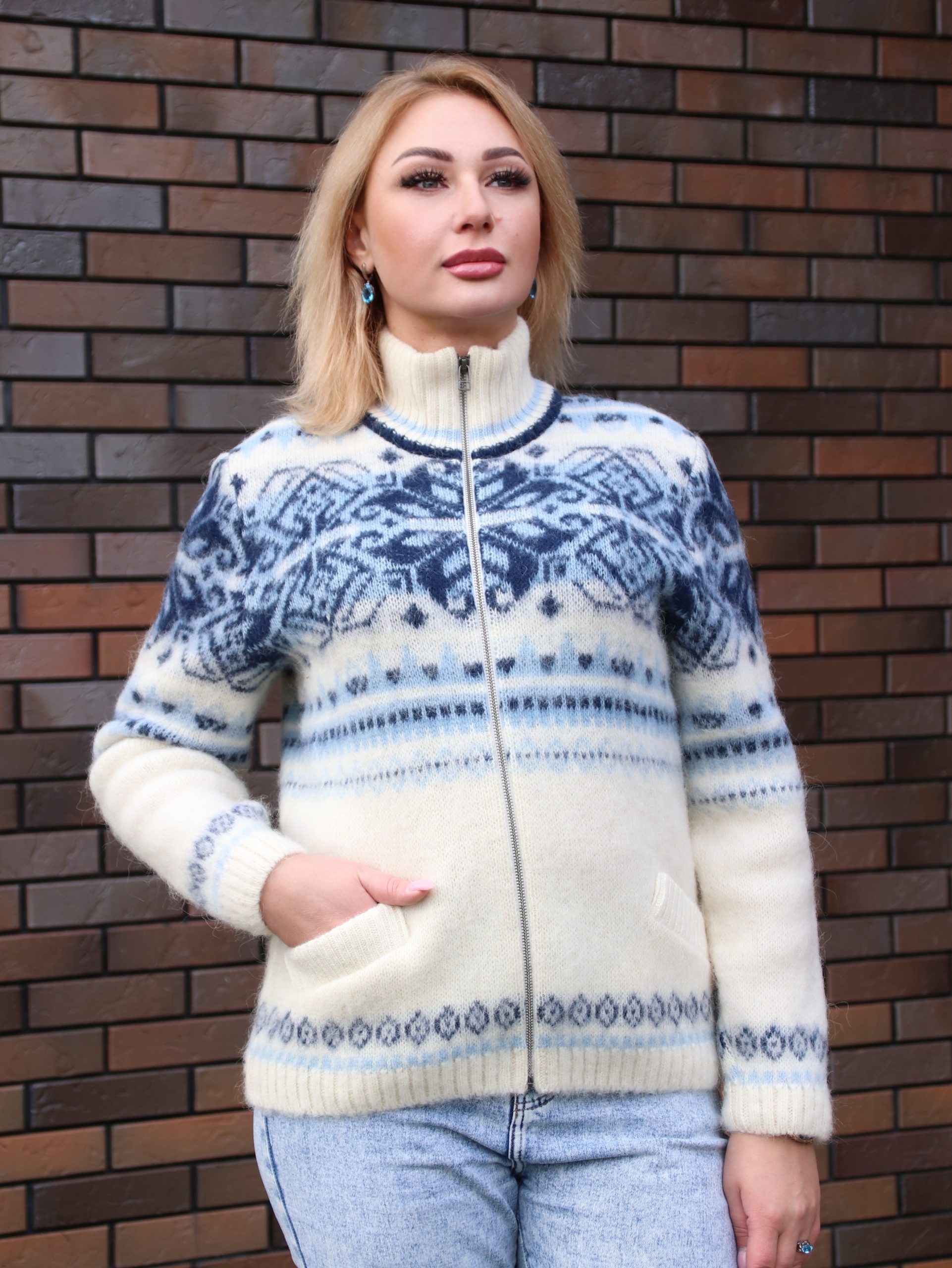 Кардиган вязаный женский на молнии с узором
