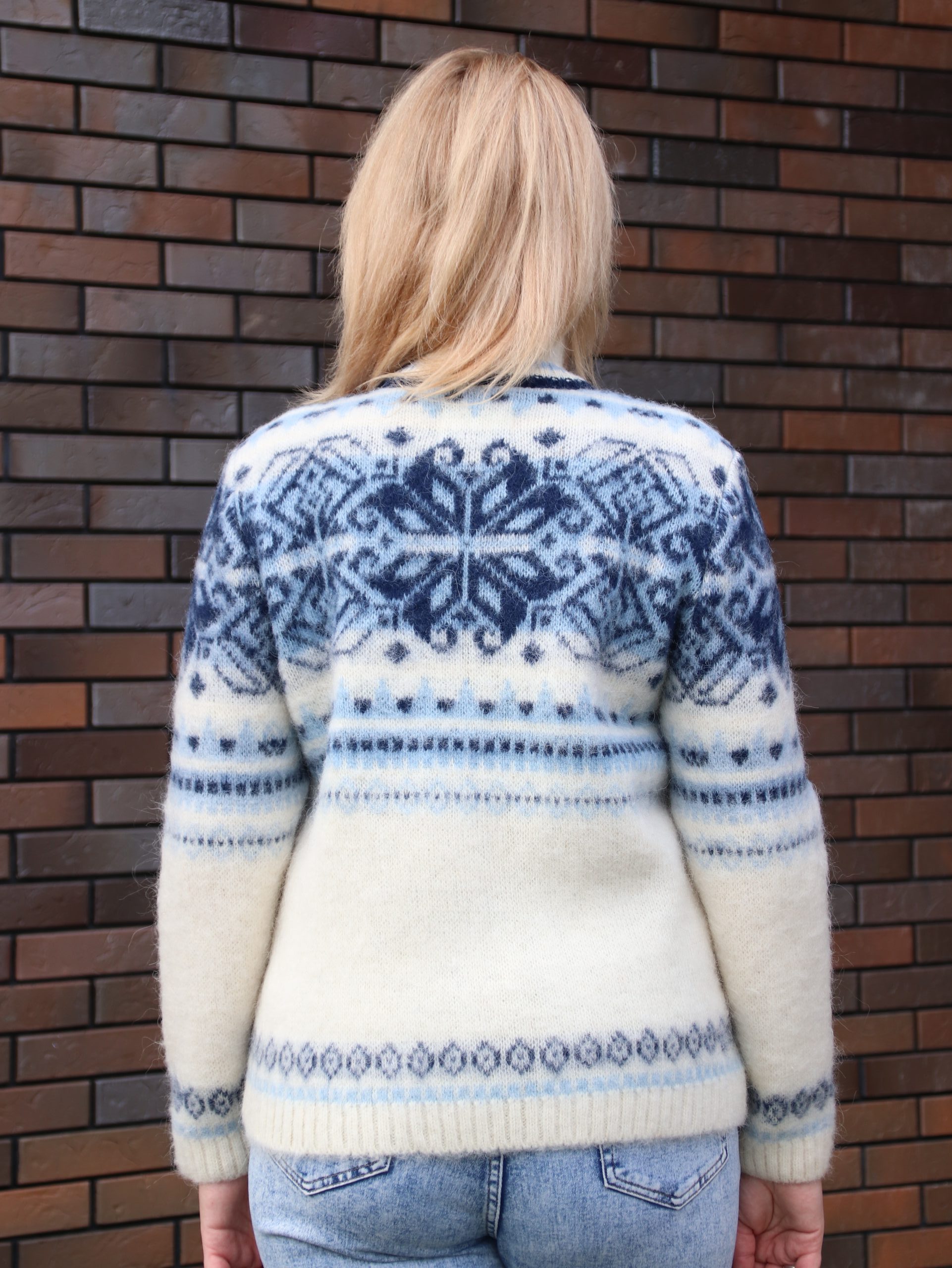 Шерстяной кардиган для женщин, приталенный с втачными рукавами и карманами в рамку. Связан из 100% шерсти в спортивном стиле с жаккардовым рисунком.