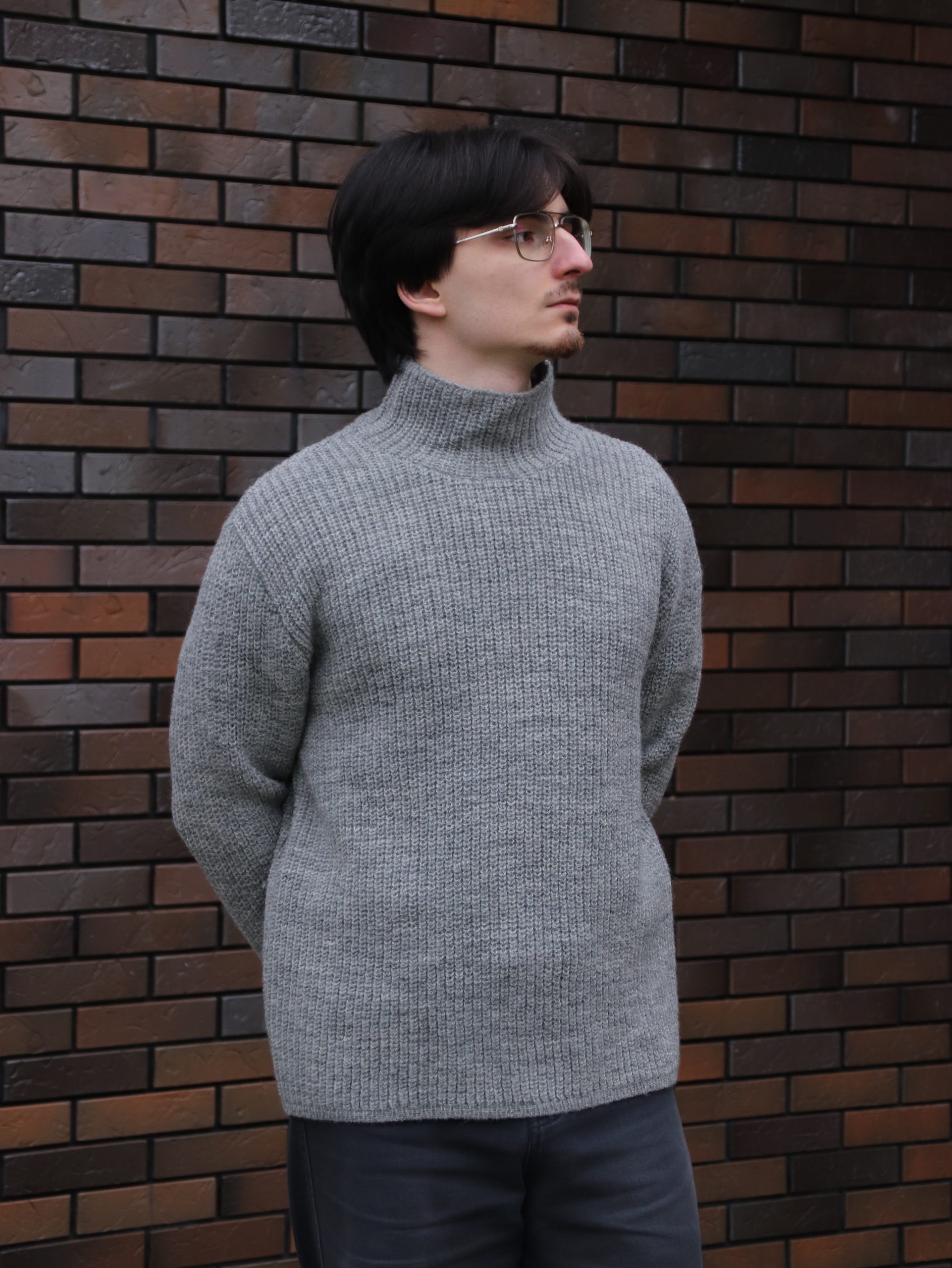 Мужской вязаный свитер из исландской 100% шерсти с длинными рукавами.