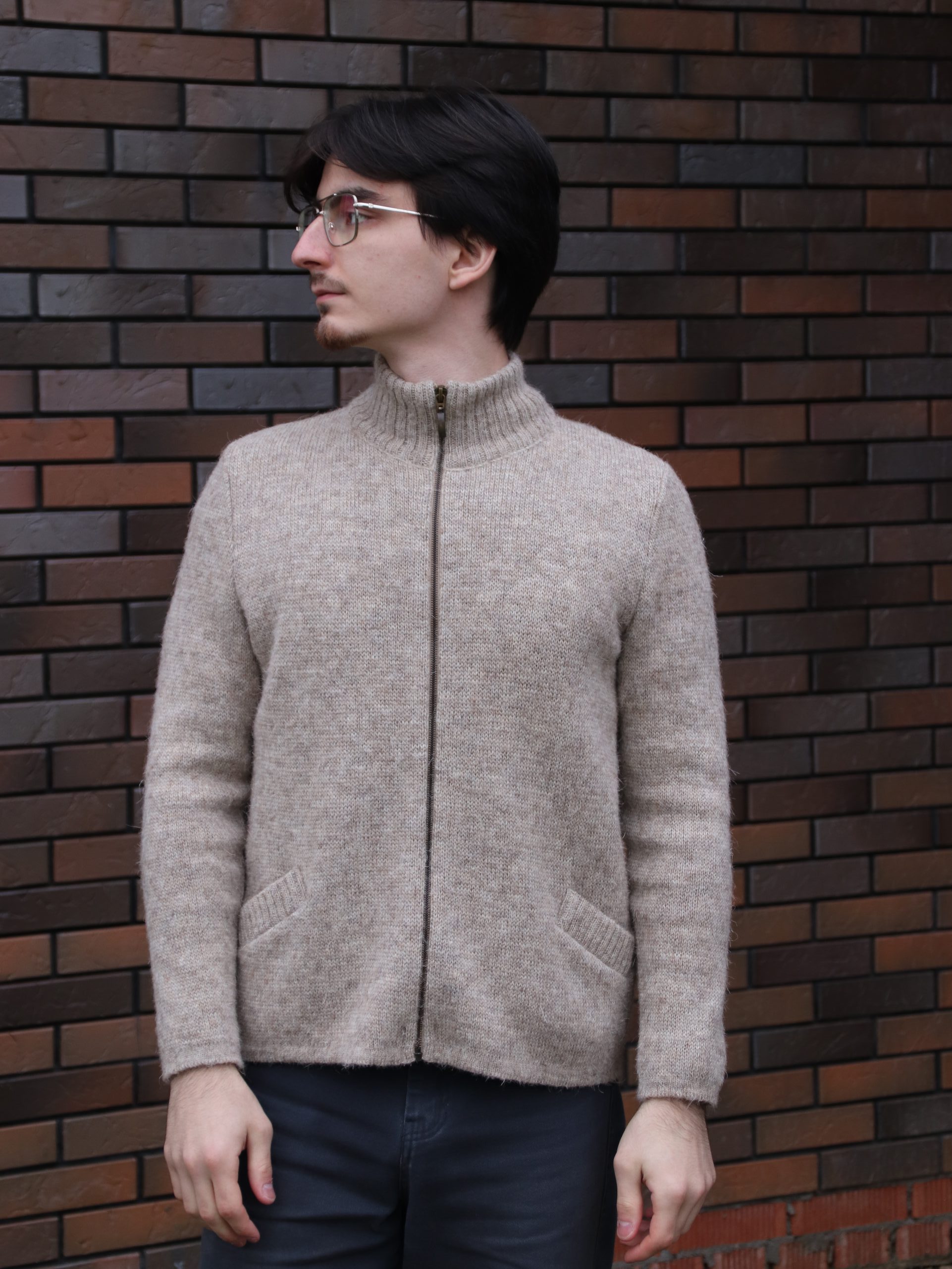 Теплый мужской кардиган с застёжкой на молнии с втачными рукавами.