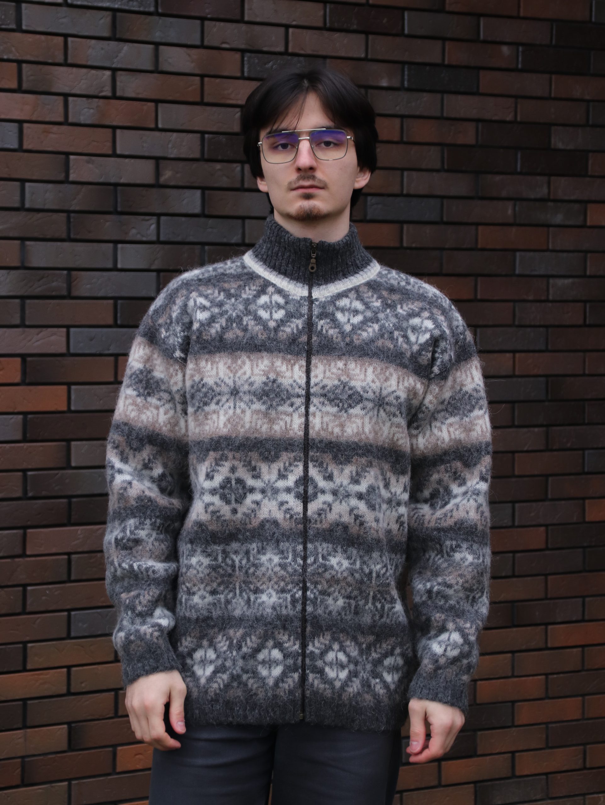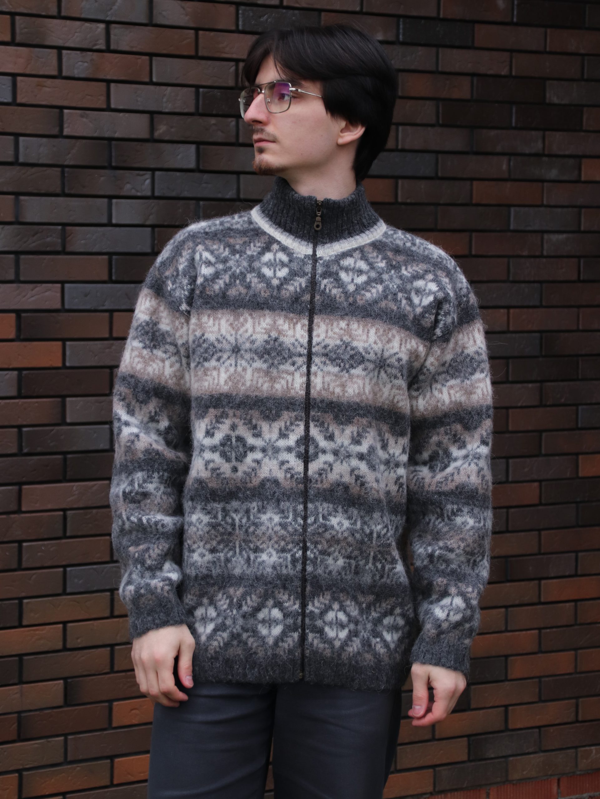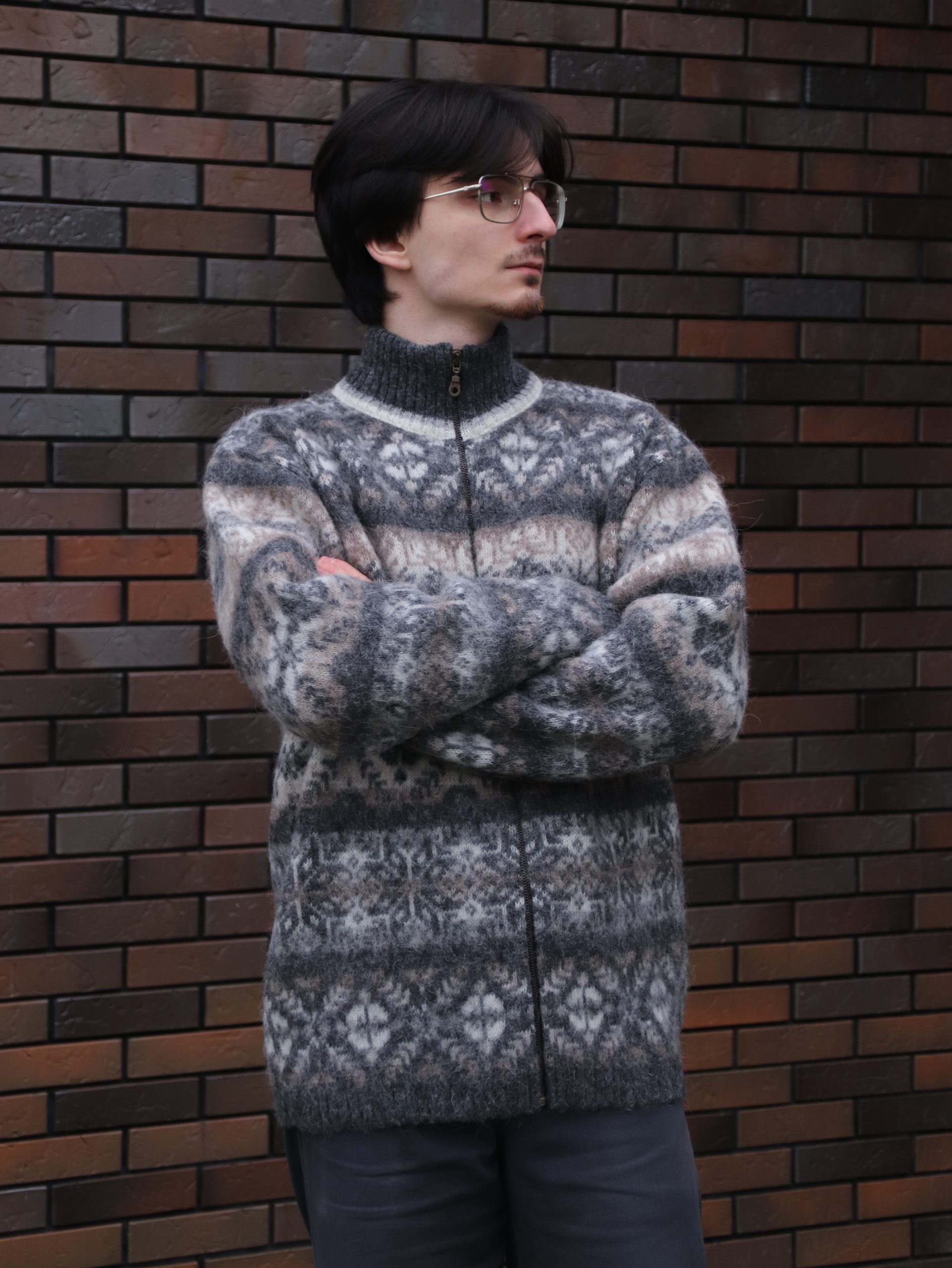Теплый мужской кардиган с застёжкой на молнии с втачными рукавами. Кофта-кардиган из натуральной исландской шерсти.
