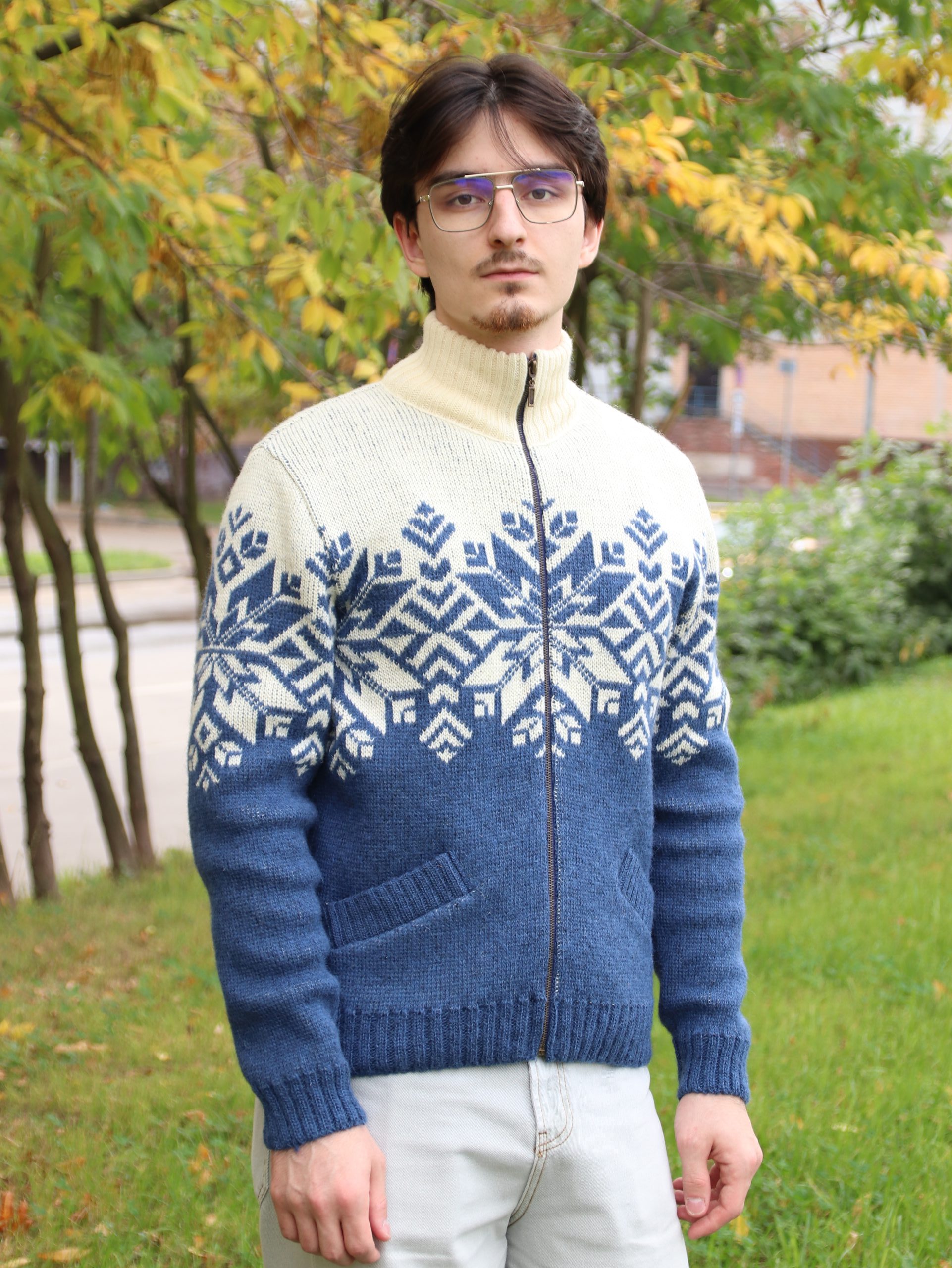 Теплый мужской кардиган с застёжкой на молнии с втачными рукавами.