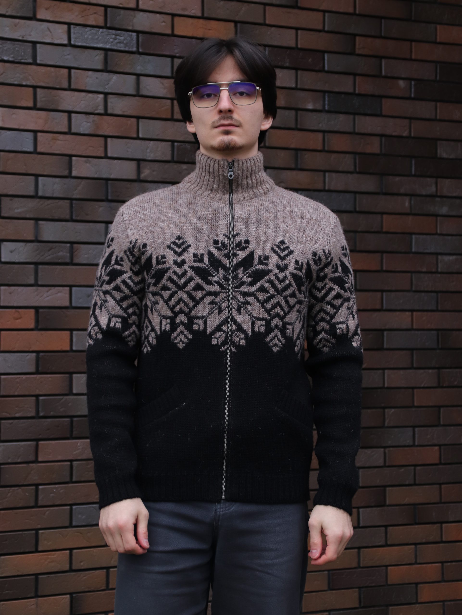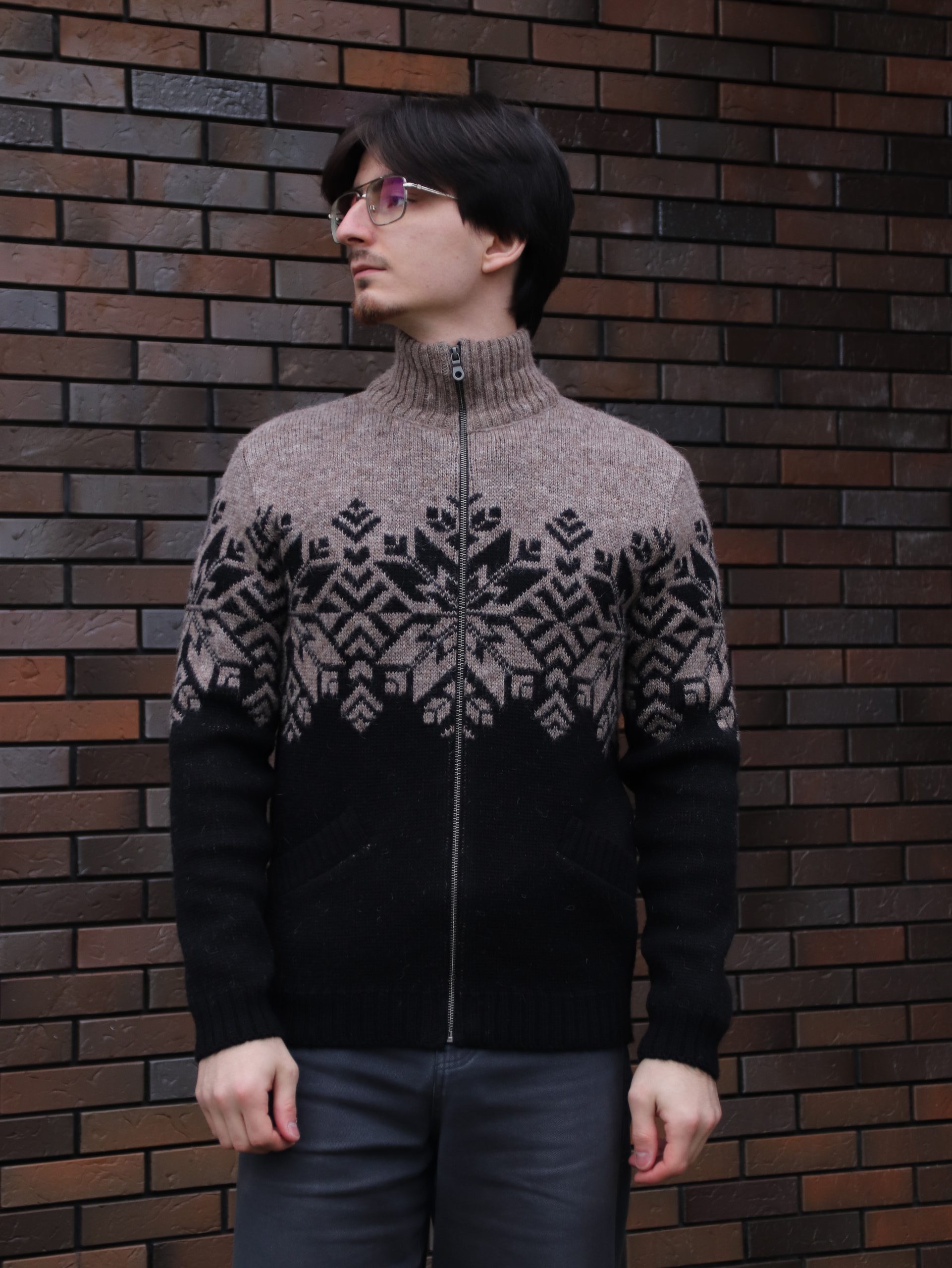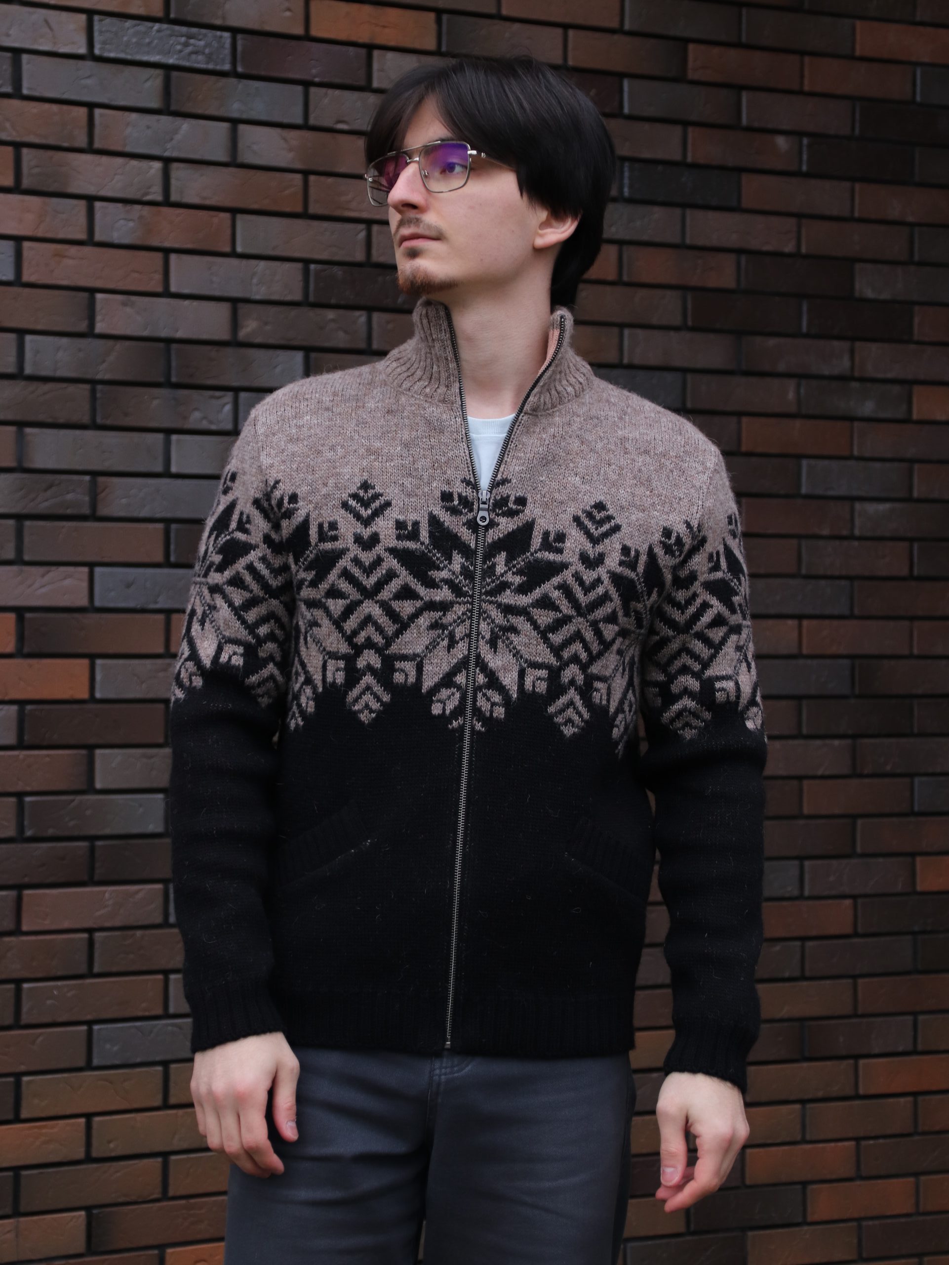 Теплый мужской кардиган с застёжкой на молнии с втачными рукавами.