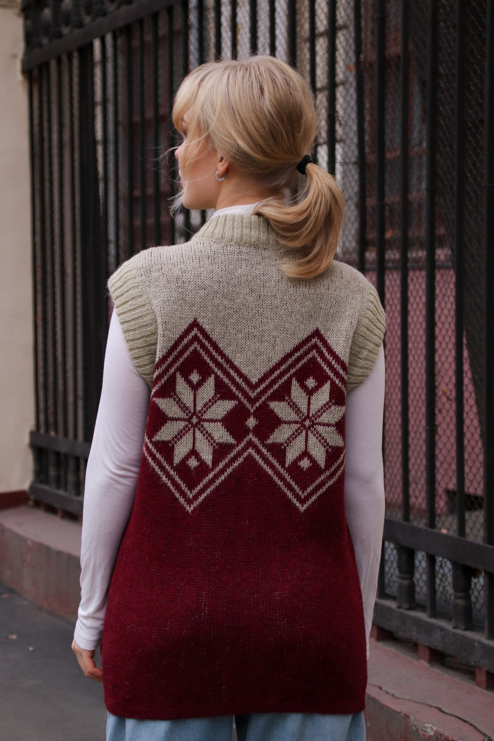 Теплый жилет для женщин из натуральной шерсти в исландском стиле. Вязаный жилет безрукавка на пуговицах, дополнен карманами в рамку.